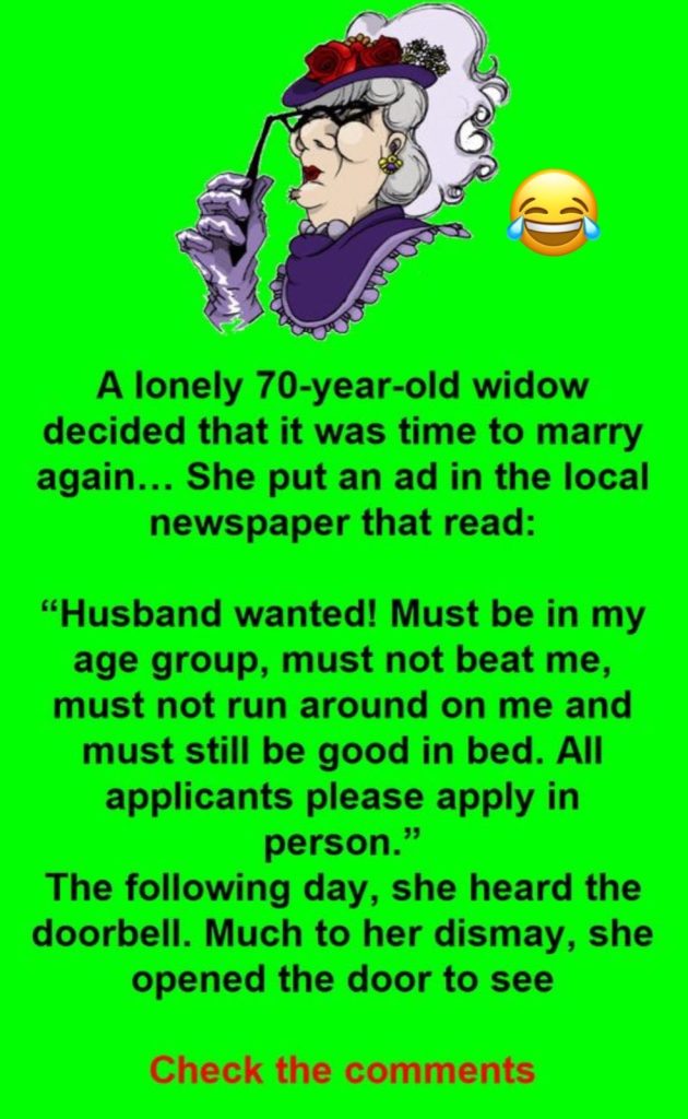 A lonely 70-year-old widow decided that it was time to marry again… She put an ad in the local newspaper that read: