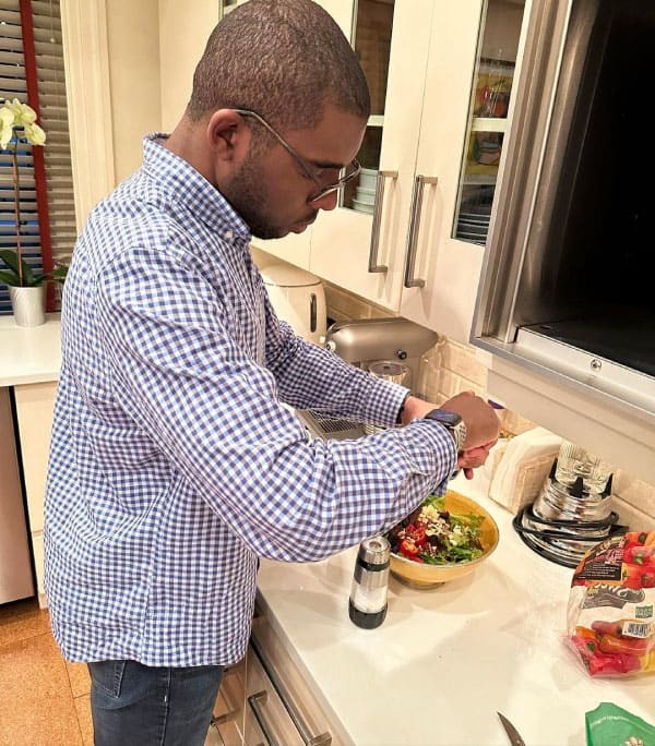 The college student could be seen in the photo that the ABC journalist posted doing what he loves to do most, which is cooking up a storm.