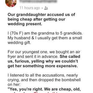GRANDDAUGHTER FOUND HER GRANDPARENTS’ WEDDING GIFT CHEAP Jen and her husband were on their 70s, as they haf five grandchildren. Three of them were women and two…