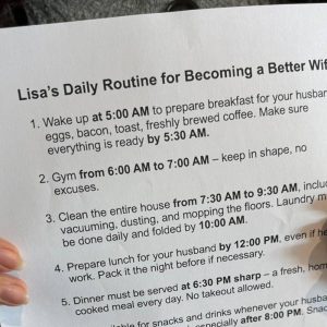 MY HUSBAND CREATED A NEW SCHEDULE FOR ME TO “BECOME A BETTER WIFE”