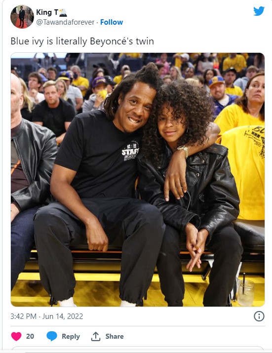 Blue Ivy is literally Beyoncé’s twin, according to one Twitter user, who also added: “Sorry, had to do a double-take when I saw Blue Ivy at the NBA game.”