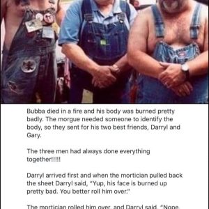 Bubba died in a fire and his body was burned pretty badly. The morgue needed someone to identify the body, so they sent for his two best…