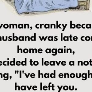 Irritated because her husband was late again, she left a message saying, “I’ve had enough and have left you. Don’t bother contacting me.” Then she hid beneath…