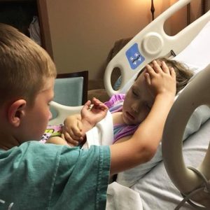 A 6-year-old boy wishes his smaller sister goodnight for the final time
