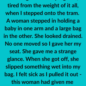 I was eight months pregnant, swollen and exhausted, when I stepped onto the tram after my doctor’s appointment. My back ached. My ankles looked like they belonged…