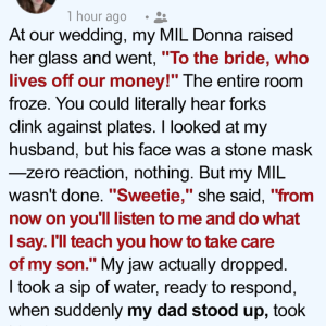 At our wedding reception, just as dessert plates were being set down and the room had softened into that warm, glowing hum of celebration, my mother-in-law Donna…
