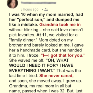 I was ten when my mom remarried, had her “perfect son,” and slowly erased me from her life like I’d been a typo. Grandma took me in…