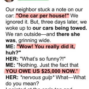 Lindsey smiled smugly as our cars were towed, clearly thinking she’d won some petty HOA war. Jack and I had just moved into the rental for a…