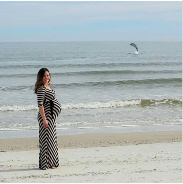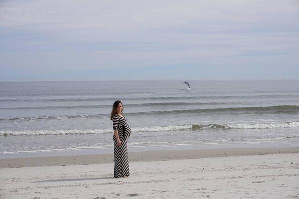 Dan was aware of the dolphins’ existence nearby, so it wasn’t wholly unexpected. But he never expected to photograph one jumping in the foreground of a picture of his wife being pregnant.