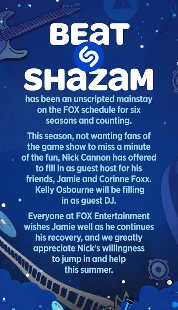 FOX confirmed on May 3 that Jamie will also have a temporary replacement on his program Beat Shazam. Although he will be missing the upcoming sixth season of the well-known game show, where his daughter Corinne also serves as DJ, he is a co-host on the program.