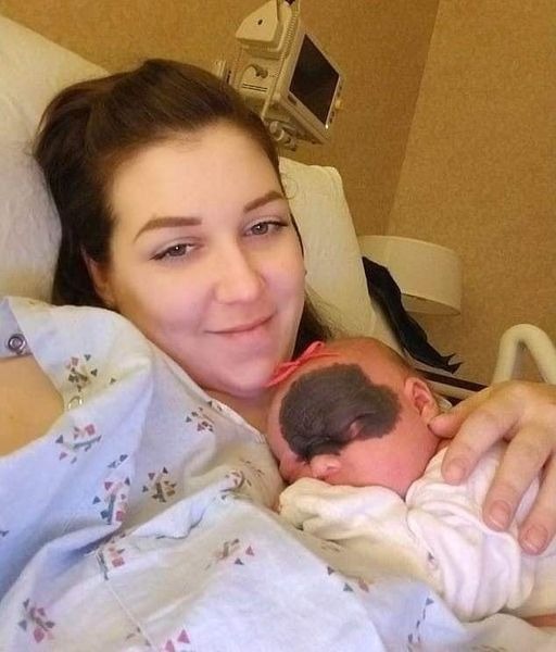 Andrew, 34, and Lacey Jackson, 35, were shocked to see Natalie come with a big mark that resembled a mask on part of her forehead, nose, and around her left eye.