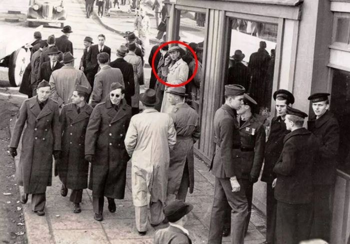 Investigators on Facebook have found an odd-looking man in a black-and-white 1940s shot using what appears to be far more modern equipment than was appropriate for the time.