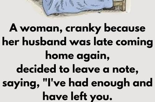 Irritated because her husband was late again, she left a message saying, “I’ve had enough and have left you. Don’t bother contacting me.”